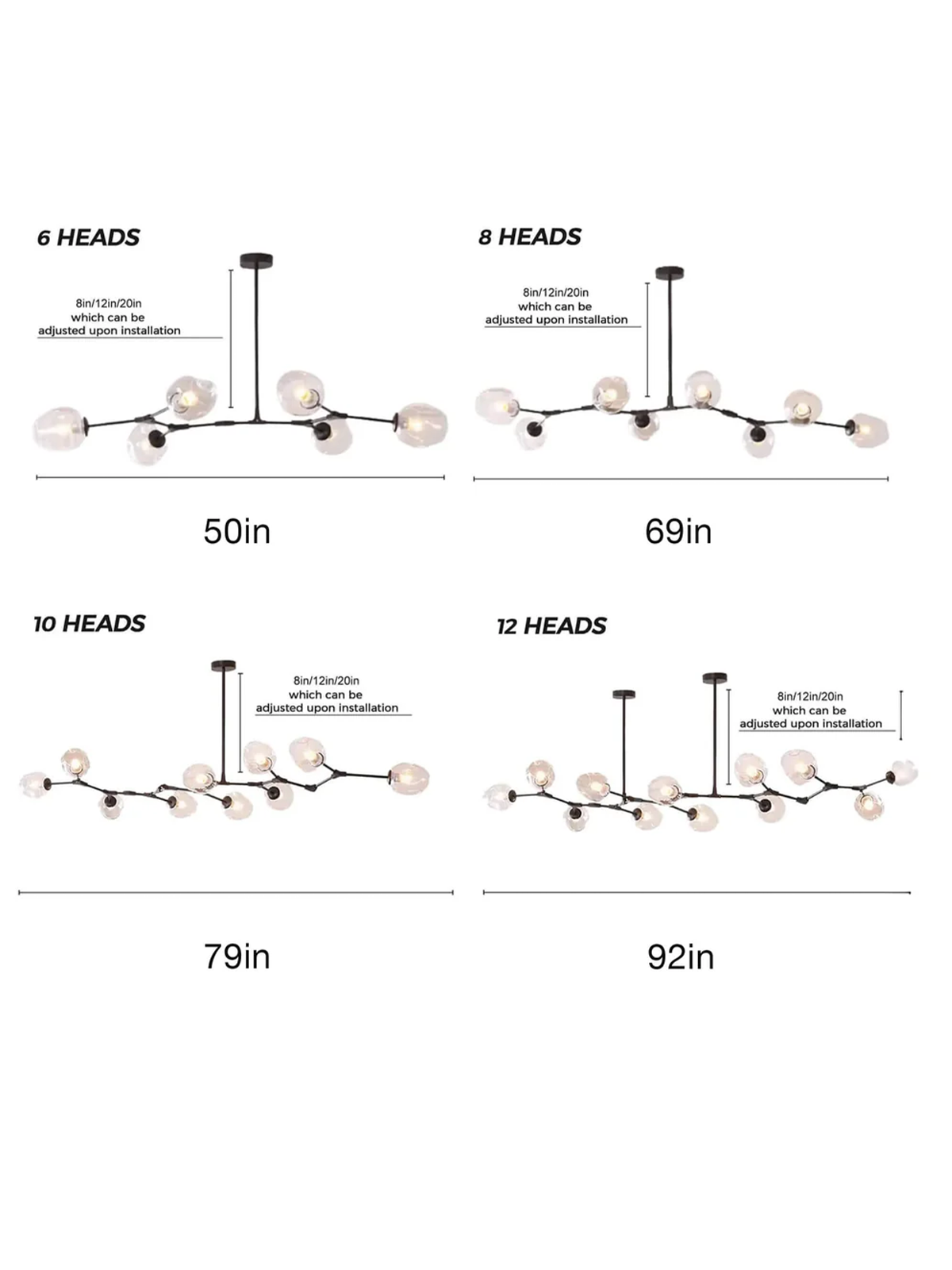 6 Globes 125cm • 8 Globes • 175cm • 10 Globes 200cm