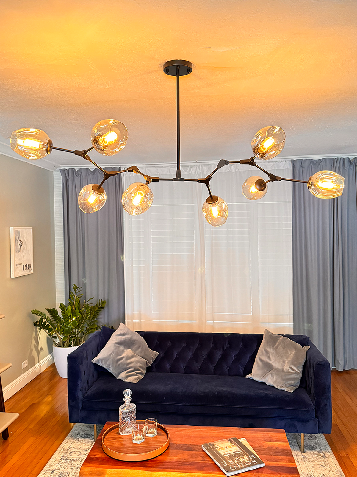 The Retro Loft Chandelier is one of the most flexible traditional designs in the market today. We have modernize this classic with a variety of custom glass globes and you have the option to any e27 bulb available. This includes colors from a warm 3000 to a cool 6000. Just also select dimmable when shopping for bulbs as this allow maximum ambiance control. The oversized rod connection joints allow for unlimited configuration options. The Retro Loft is a classic with modern features.