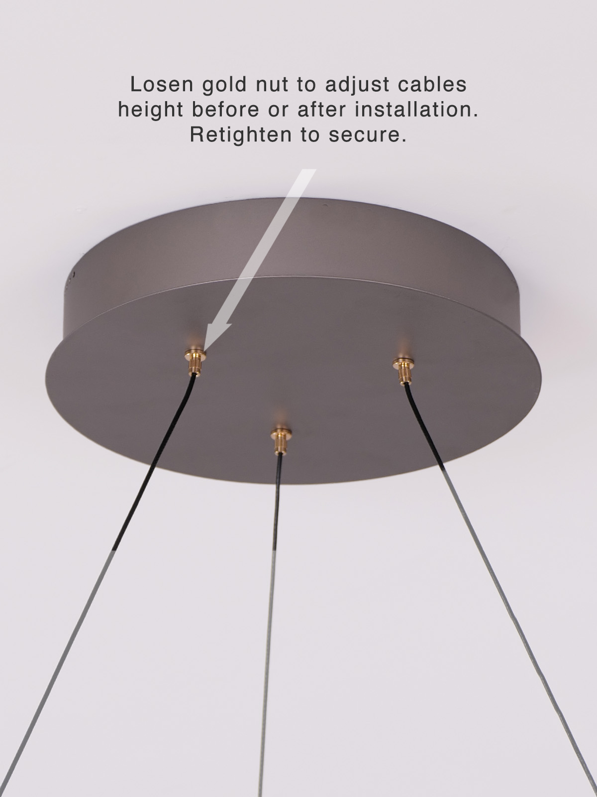 The height of the Titan Rings can be easily adjust after installation by depressing the hold pins in the celling plate and moving the cable in or out.