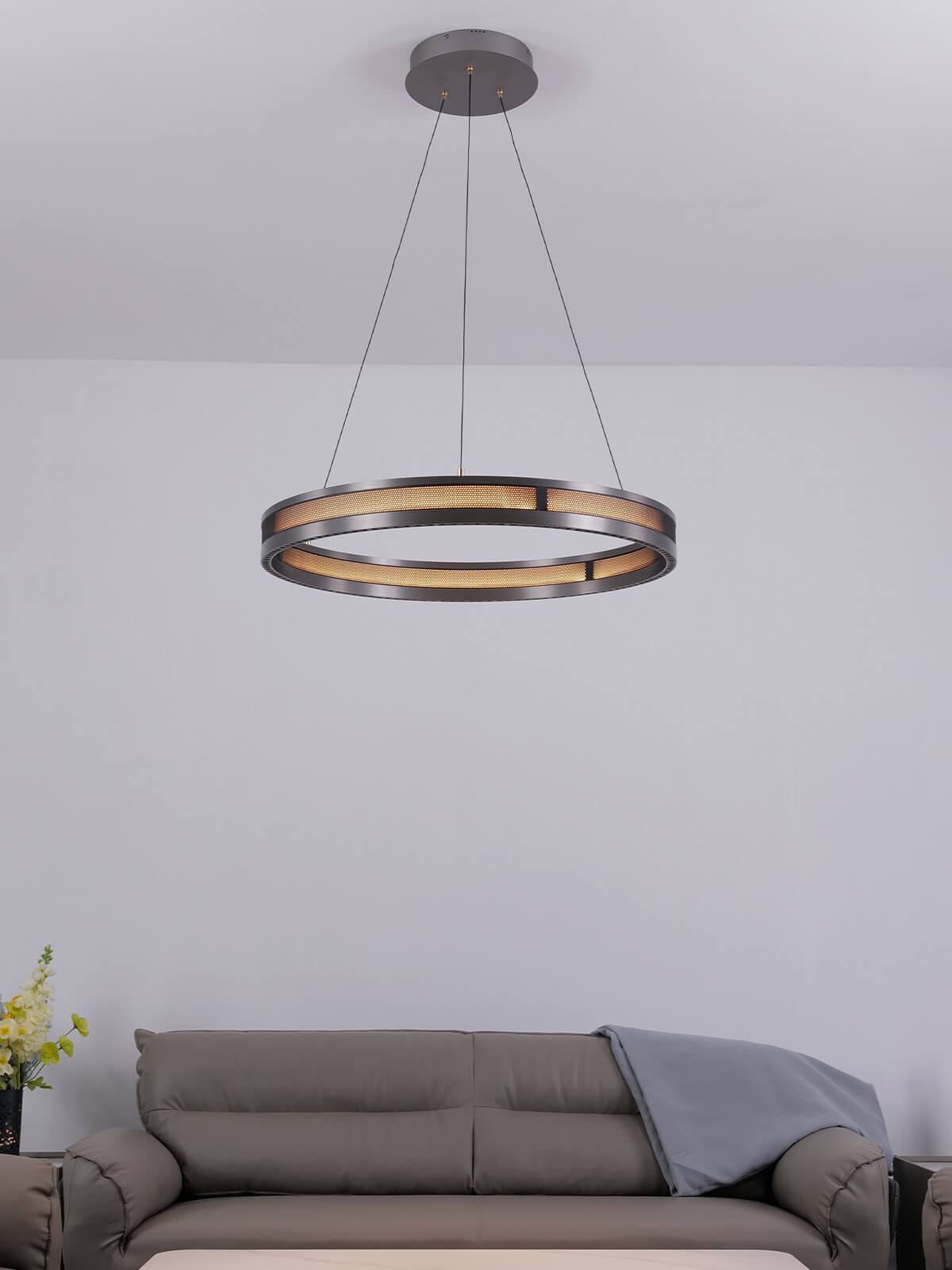 Our Titan Ring Chandelier makes a bold statement with its industrial design and striking presence. It's perfect for adding a touch of sophistication and character to any room. The lights have 3 modes to enjoy - down light feature, side light feature and or both side and down.