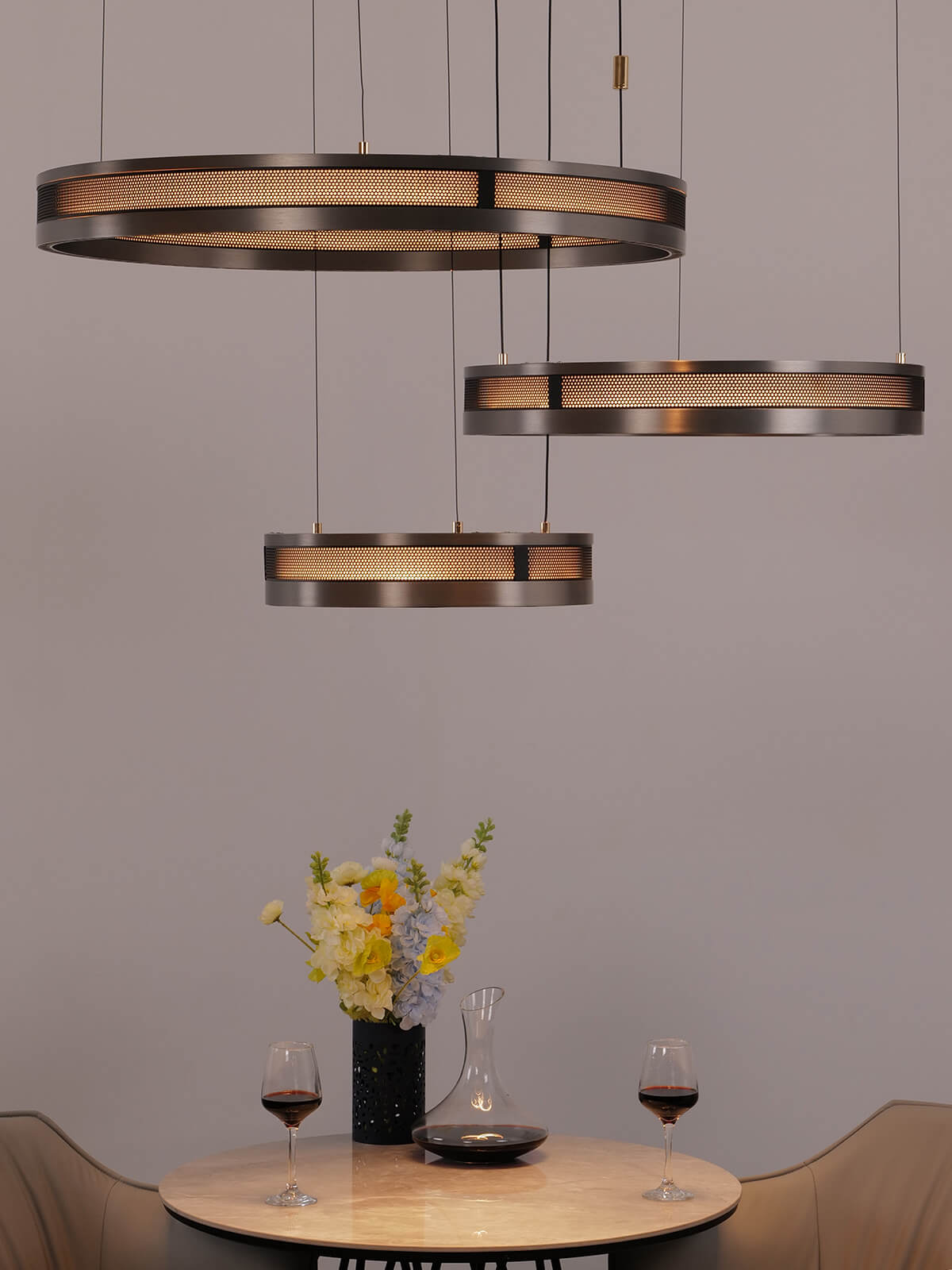 "We looked at fixtures from Restoration Hardware, CB2, and local boutiques. Nothing compared to the presence these rings command. Every dinner party, someone asks about them. Worth every penny for something that transforms your entire space."
